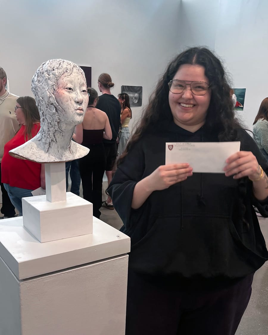 Each year, the Department of Visual Art invites all students to submit their artwork for consideration in the Juried All Student Art Show. Submissions are evaluated by a guest artist, and awards include Best of Show, Best 2-D and Best 3-D.