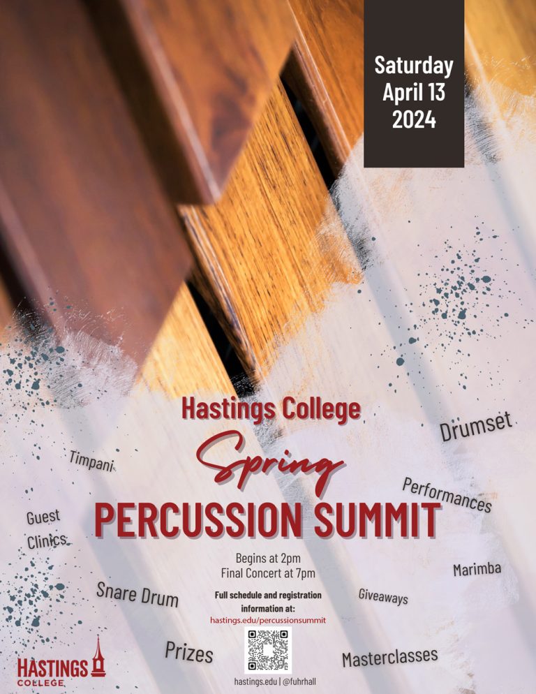 Hastings College Music is hosting its inaugural Spring Percussion Summit on Saturday, April 13 in Fuhr Hall (927 N. Ash Avenue), with a concert featuring