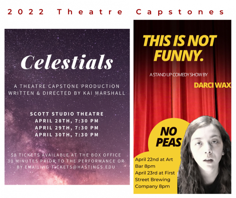 Hastings College Theatre has announced performances for two upcoming capstones productions, a stand-up comedy show to be staged off campus this Friday and Saturday, April