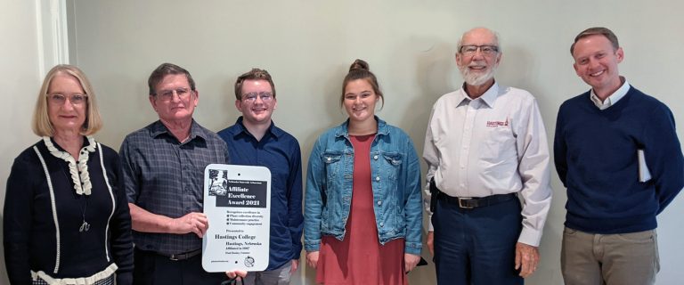 Hastings College was awarded the Nebraska Statewide Arboretum’s Affiliate Excellence Award in Lincoln November 5. The award recognizes excellence in plant collection diversity, maintenance practices