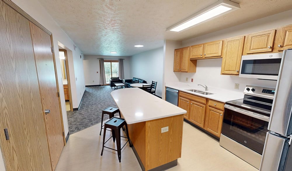 Bronco Village Apartments, or BVA, at Hastings College features apartment-style living for students who have been in college for four semesters and are listed as a junior or senior.